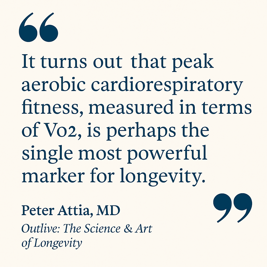 VO₂ max is the volume of oxygen the body can use at maximum capacity. It is the gold standard for measuring your overall fitness and reveals how efficiently your body uses oxygen, giving you precise training zones to help you train smarter, recover faster, and perform at your best. A higher VO₂ max is linked to better cardiovascular health, longer lifespan, and lower risk of chronic disease—making it one of the strongest indicators of overall health and fitness.